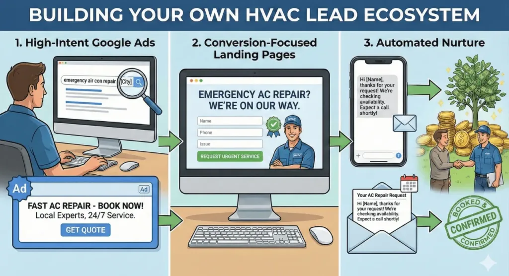 Building Your Own HVAC Lead Ecosystem To truly scale your HVAC business, you need a proprietary system. This means:
